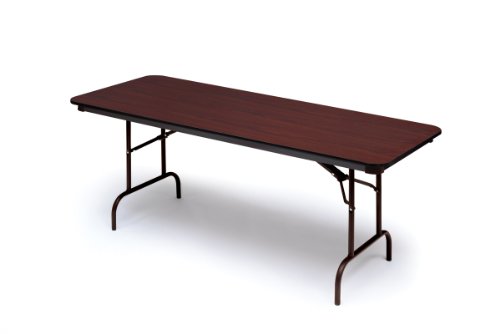 Iceberg premium wood laminate folding tables offer a traditional look that will coordinate with any environment. Strong, durable, multi-purpose tables. Features a wear resistant, thermally fused melamine laminate to particle board substrate with a black vinyl T-mold edge. Wear resistant 3/4-inches thick melamine top. Heavy duty leg supports and gravity lock. Melamine sealed underside to prevent moisture absorption. Full perimeter steel skirt support with plastic corners to protect surface when stacking. 1-inches diameter, heavy gauge, steel legs with heavy duty protective foot cap. Charcoal color legs, gray finish.
