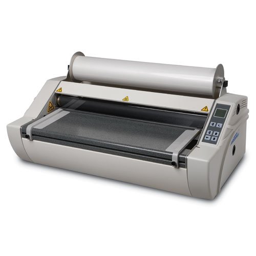 Engineered to provide years of service in a Small Business, School or mid-volume Copy/Print Shop with little or no maintenance. The unique self-tensioning system automatically maintains the proper film tension throughout the job to permit wrinkle-free laminating without any operator input. An automatic "Snooze" function powers down the laminator after 30 minutes to save energy and the microprocessor control prevents the laminator from operating until the optimum laminating temperature is reached.